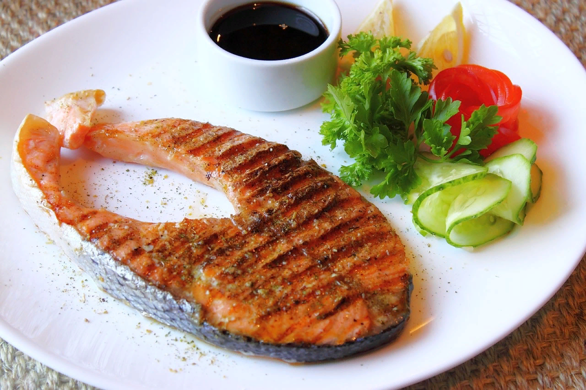 Из стейков семги можно приготовить королевское блюдо, даже если просто пожарить их на сковороде. Для приготовления используется обычная чугунная посуда, или сковорода-гриль с решетчатой поверхностью. Стейки очень быстро прожариваются, на приготовление каждой из сторон уходит не более 5 минут. Ингредиенты: Приготовление: Разделайте тушку семги на стейки. Ополосните, просушите бумажными салфетками – это необходимо сделать обязательно. С отдельной плошке смешайте соль с перцем. Хорошенько натрите куски. Пролейте рыбу маслом. Вотрите его в мясо, затем оставьте заготовки мариноваться на 10-15 минут. Хорошенько раскалите масло на сковороде. Выложите заготовки. Жарьте с нижней стороны до появления корочки. После переверните на другую сторону и закончите приготовление. Рыба подаст два сигнала о готовности: перестанет выделяться розовый сок, а на нижней стороне появится восхитительная румяная корочка. Хотите снизить калорийность блюда – сначала положите кусочки семги на бумажное полотенце. Когд