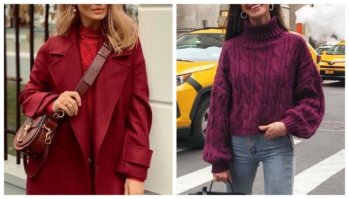Из года в год актуальными оттенками холодного сезона остаются бордо и благородный цвет марсала. Какие образы составить с помощью вещей в актуальной палитре, мы расскажем вам в данной публикации. Классический брючный костюм утонченного цвета марсала выигрышно смотрится в одной композиции с блузой в актуальный цветочный принт, а также бежевой сумкой и трендовыми нюдовыми ботильонами на шнуровке. Брючный костюм цвета «спелая вишня» можно «подружить» с нежно-розовой водолазкой, бордовым классическим пальто, а также объемной каркасной сумкой в цвет наряда. Остроносая черная обувь отлично вписывается в данный аутфит. Шикарный образ в бордовом цвете стилисты составили с помощью кожаных кюлотов, однотонной базовой водолазки, жакета, черных плотных колгот, а также актуальных ботинок в минималистическом стиле на грубой подошве. Монохромный черный аутфит выигрышно «оживился» и заиграл новыми красками благодаря стильной бордовой шубе «чебурашке». Элегантно и стильно модницы в холодный сезон могут