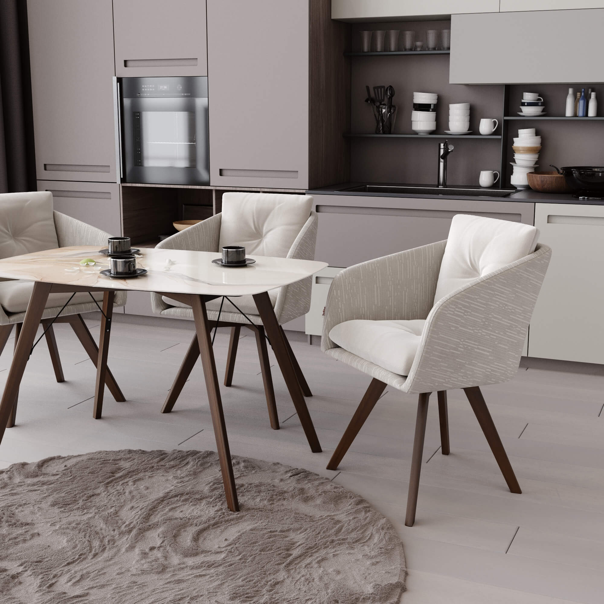 Обновите кухню, столовую или ваш домашний кабинет с помощью стульев нежных, уютных оттенков и столов с оригинальными узорами.