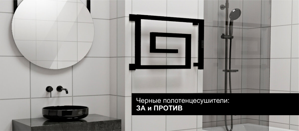 Ванные комнаты в черных оттенках с сантехникой черного цвета становятся всё более популярны, а количество полотенцесушителей в черном цвете постоянно растет. Ванная комната в черном цвете не будет казаться мрачной, если правильно подобрать акцентные детали. Черный полотенцесушитель как раз и может стать этой акцентной деталью. Если вы хотите сделать акцент на черном полотенцесушителе, то выбирайте интересные дизайнерские формы, которые будут привлекать внимание. Если же вы хотите полотенцесушитель, который не будет привлекать внимание, а просто будет выполнять свои основные обязанности, то лучше выбирать «лесенки» и «змеевики». Главное негативное мнение при установке черного полотенцесушителя – «на нем сильно будет видна грязь». Но так ли это на самом деле? При регулярном уходе изделие не будет выглядеть грязным, ведь его достаточно протирать мягкой тканью, смоченной в мыльном растворе, а после протирать насухо. Тогда не будет следов, разводов и пыли на изделии. Черная сантехника в