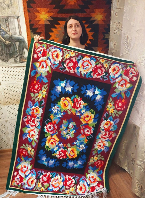На прошлой неделе в Культурном центре МИД в Москве представили фрагмент открытия Коренской ярмарки. С культурным наследием соловьиного края, его традициями инструментальной, песенной и танцевальной культуры познакомились послы из почти 50 стран. Клуб народного костюма «Русская традиция» привёз костюмы Курской губернии, а мастера ковроткачества – знаменитые суджанские ковры. Даже от их названий – «Соловьиная трель», «Иван Купала», «Курская антоновка» – становится тепло и уютно. На выставке также была представлена дипломная работа Анастасии Бородкиной под названием «Екатерина» и цветочный ковер, сотканный мастерами учебно-производственной мастерской колледжа искусств «Летний вечер». Это самая большая из пяти работ. Размер ковра 180х230 сантиметров. Его создавали трое мастеров по проекту студентки колледжа Анастасии Воскобойниковой. Интерес к ковроткачеству сегодня растёт. Суджанские ковры узнаваемы и являются визитной карточкой не только Суджи, но и всей области. Однако вписать ковёр в с