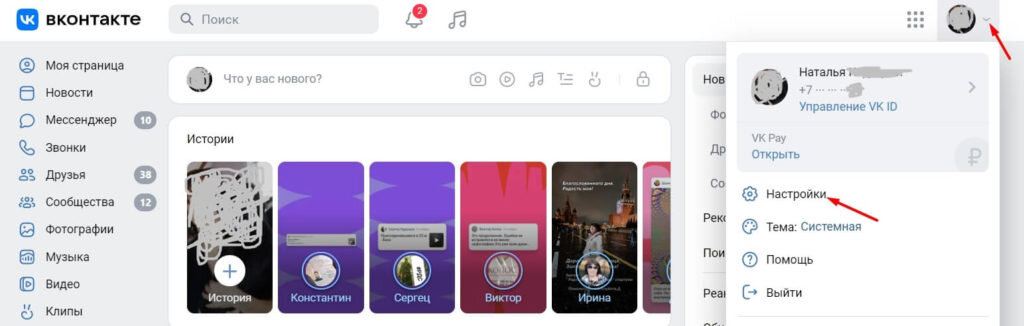 Раскройте меню, щелкнув по стрелке рядом с аватаром, и выберите «Настройки».