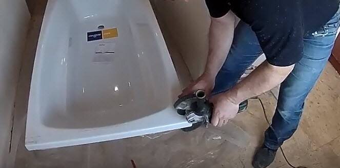 Ширина ванной комнаты была 165 см., был выбор установить ванну 150 см или ванну 170 см., но пилить лишнее, мною был выбран второй вариант. Была куплена акриловая ванна 170 см и нехитрыми манипуляциями с помощью болгарки отпилил лишнее.