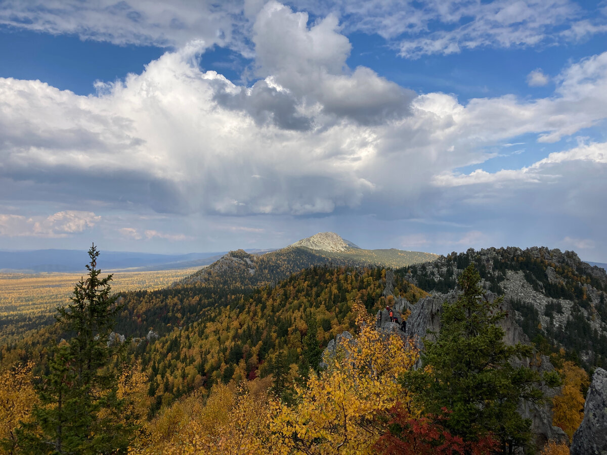Что может быть лучше чем сгонять в горы, если сейчас начало осени и стоит отличная погода? В середине сентября в Челябинске стояла отличная погода и уже начинали желтеть деревья. А это значит, что в горах уже настоящая золотая осень. Такую погоду нельзя было упускать. Наверное, самое близкое к Челябинску место с самыми красивыми видами, которое можно посетить за один день - это двуглавая сопка в парке Таганай. Туда и решено было отправиться. Едем в Златоуст по М5 Вход в парк платный (кроме пенсионеров и еще нескольких категорий) и привязан к размеру МРОТ. Так что за последние года два стоимость входного билета несколько раз возрастала. Сейчас (ноябрь 2023) билет стоит 200 рублей. Рядом с Центральной усадьбой (основной вход в парк) есть большая бесплатная парковка. Выходим на тропу. Дошли до реки Большая Тесьма. Тут небольшой привал. Хотя, возможно, это еще одна картина Шишкина... После речки тропа начинает идти вверх с бОльшим уклоном (ее непросто так называют "пыхтун") и становится на