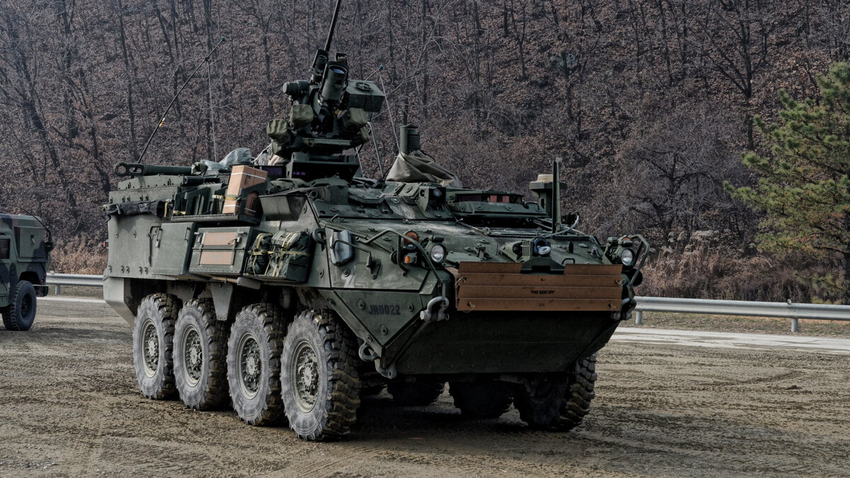 Кумулятивная струя российской ракеты пробила корпус БТР Stryker насквозь и подпалила технику ВСУ