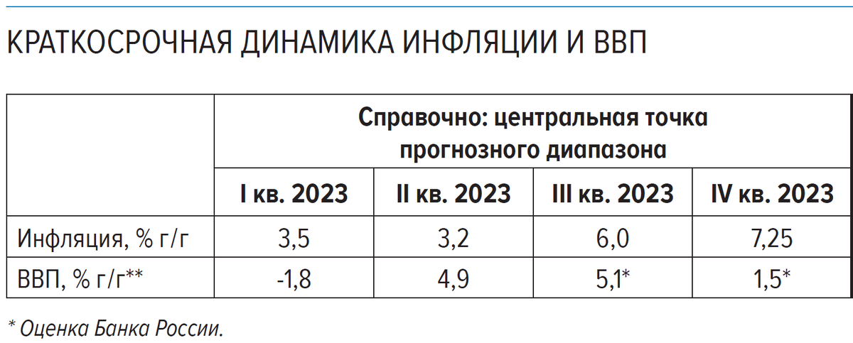 Банк России сегодня (7 ноября 2023 года) в докладе о денежно-кредитной политике оценил рост ВВП в 3 квартале как +5,1% и спрогнозировал замедление темпа до +1,5% в четвёртом квартале. На графике это будет выглядеть так. Рост ВВП в 2023 году при таком раскладе от ЦБ составит 2,4%. Напомним, что правительство (в лице Минэкономразвития) оценивает рост в 3 квартале в +5,2%, а итоги года ожидает на уровне 2,8%. Почему замедление? Возникает вопрос: почему в 4 квартале ЦБ ожидает замедление в экономике? Ведь выпуск базовых отраслей и другие показатели говорят об ускорении, а не о замедлении. Ответ может скрываться в подгонке под свои (Банка России) прогнозы. ЦБ в своём последнем прогнозе (октябрь 2023 года) ожидает рост ВВП по итогам года в диапазоне 2-2,5%. Любой рост в 4 квартале выше +1,5% в этот прогноз просто не вписывается, потому что рост ВВП получается больше, чем +2,5%. Вот ЦБ и бережёт честь мундира. ЦБ не ожидает выхода на уровень "до СВО" в 2023 году Четырёхквартальный ВВ