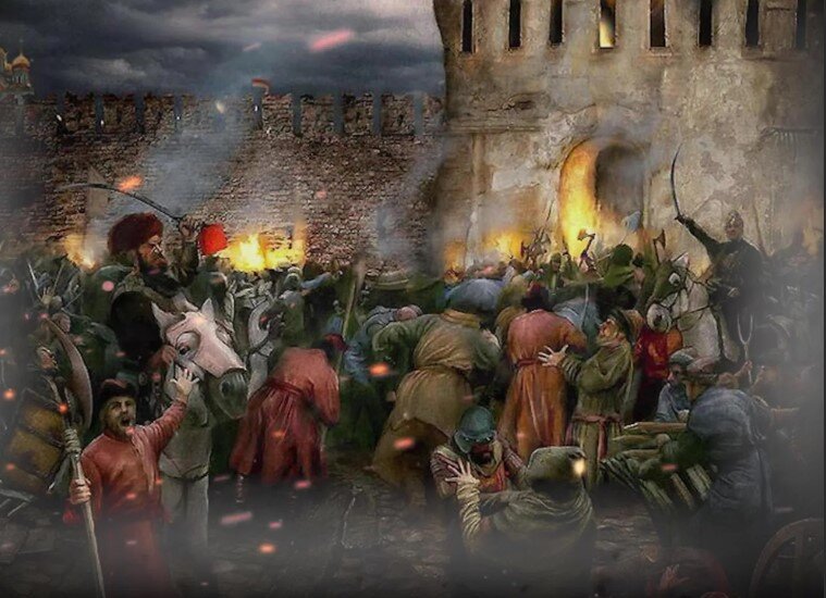 4. В Рязани в начале 1611 г. сформировалось первое ополчение во главе с Прокопием Ляпуновым. К нему присоединились также тушинцы Заруцкий и Трубецкой и отряды, воевавшие ранее под началом Скопина-Шуйского. С конца марта ополчение начало осаду Москвы. Вскоре, однако, разногласия между дворянской и казацкой частями ополчения дали себя знать. Поляки переслали казакам подложную грамоту, якобы составленную Ляпуновым, где повелевалось «казаков по городам побивать». Ляпунов был вызван на казачий круг и убит. Дворянское ополчение ушло из лагеря казаков. Осаду поляков продолжили части Трубецкого и Заруцкого. Летом 1612 г. Заруцкий также покинул московский лагерь. Вместе с ним отправилась и Марина Мнишек с сыном Лжедмитрия II«воренком» Иваном, которого Заруцкий хотел видеть московским царем. Первое ополчение распалось.