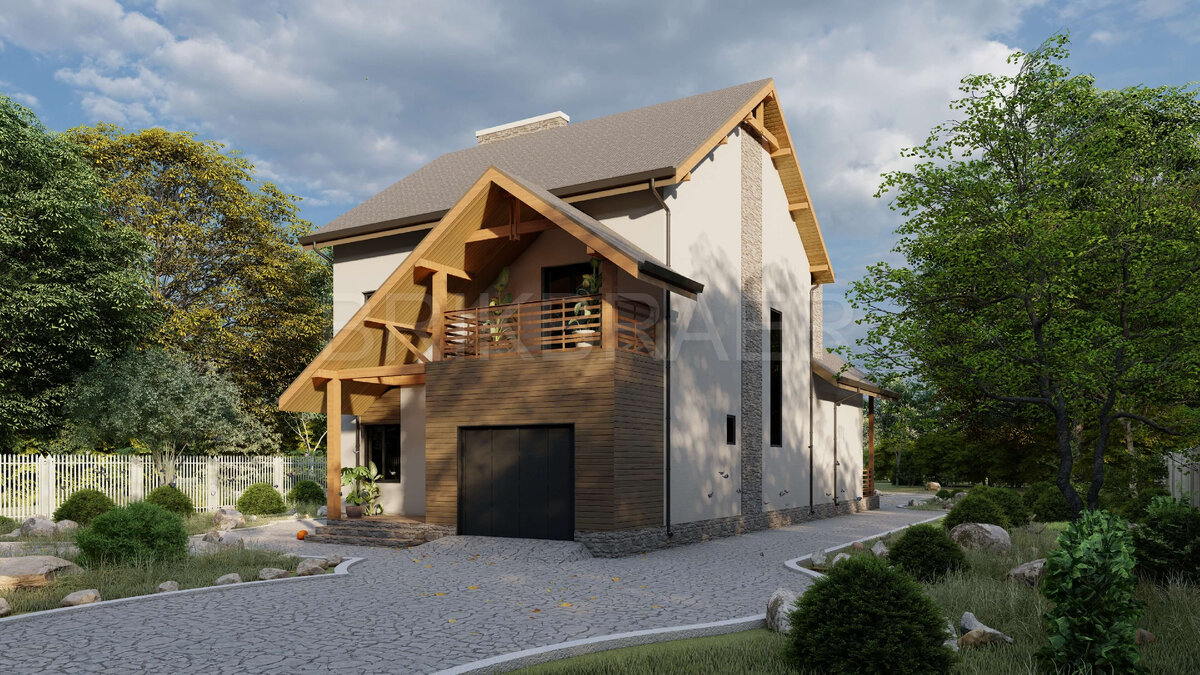 Нестандартная форма дома, деревянные навесы, каменные вентиляционные коробы, фасадная штукатурка, мягкая черепица, тонированные окна - экстерьер этого проекта НЕ МОЖЕТ не произвести впечатление🔥