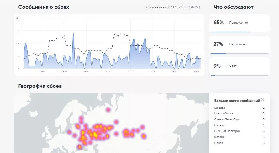 Пользователи «ВКонтакте» из Новосибирска пожаловались на сбой в работе соцсети. Сибиряки не смогли зайти на свою личную страницу с помощью компьютера. При этом мобильное приложение функционирует нормально. Сегодня с такой же проблемой столкнулись жители и других регионов России. По данным сервиса фиксации сбоев, больше всего жалоб зафиксировали в Москве (12 пользователей), Новосибирске (10) и Санкт-Петербурге (9). Из диаграммы следует, что отмечать перебои в работе сервиса жители начали после полуночи по московскому времени. В 00:30 мск (по местному времени — 03:30) 12 пользователей пожаловались на проблемы в функционировании социальной сети, при базовой норме в 9 пользователей. «Да что там с ВКонтакте изображения некоторые не отображаются, а в компьютере вообще не загружается страница, крутится», — комментирует пользователь Кристина Лопаева. «Все еще ошибка сети. И через мобильный браузер сайт вообще не прогружается. Слов нет», — отмечает пользователь Евгения Каширская в комментариях
