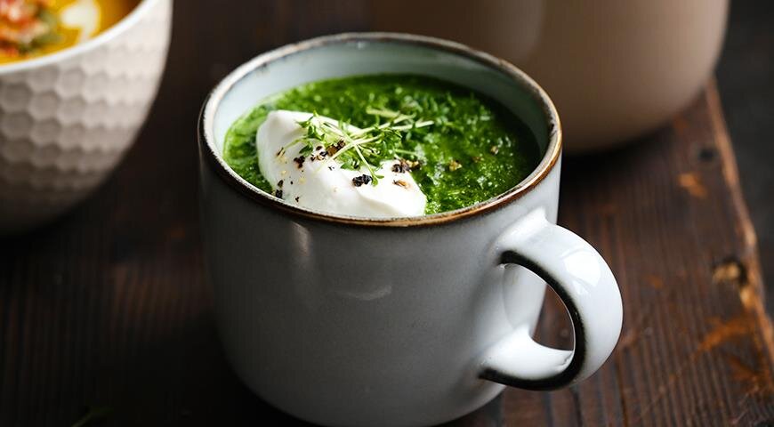 Ингредиенты пошаговый рецепт приготовления Шаг 1 Лук, цукини, брокколи и сельдерей нарежьте как можно мельче, измельчите чеснок. Шаг 2 Разогрейте оливковое масло в кастрюле, добавьте лук и готовьте на среднем огне до мягкости, 3 мин. Подпишитесь на рассылку рецептов и советов Подписаться Шаг 3 Добавьте цукини, брокколи, сельдерей и чеснок, влейте 800 мл воды, посолите и доведите до кипения. Уменьшите огонь и варите суп 5 мин, пока овощи не станут мягкими. Добавьте шпинат, готовьте 1 мин, снимите кастрюлю с огня. Шаг 4 Измельчите суп блендером до желаемой консистенции. Поперчите суп, добавьте песто и перемешайте. Разлейте суп по тарелкам, украсьте микрозеленью и добавьте сметану. Время готовки 20 мин Количество порций 3-4 Сложность приготовления легко Технология Варка Повод Обед Устройство блендер На одну порцию: Калории 136,1 ккал Белки 3,9 г Жиры 10 г Углеводы 7,6 г