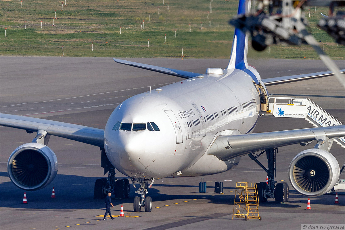 Президент Франции использует для перелётов два основных типа самолётов: дальнемагистральный Airbus A330‑200 и бизнес‑джеты Dassault Falcon 7X из спецэскадрильи ВВС Франции. На борту любого из них его позывной в эфире — «Cotam Unité». Основной «борт номер один» Для межконтинентальных поездок президент летает на специально переделанном Airbus A330‑200 ВВС Франции с регистрацией F‑RARF. Самолёт оснащён правительственной связью, защищёнными системами и салоном VIP‑класса и официально используется как главный борт главы государства с конца 2000‑х. Борт F‑UJCT – это один из трёх правительственных A330‑200, который обычно перевозит президентскую делегацию и может использоваться как запасной или дополнительный самолёт к «основному» борту F‑RARF. И F‑RARF, и F‑UJCT несут белую ливрею с триколором на киле и надписью «RÉPUBLIQUE FRANÇAISE» на фюзеляже, подчёркивая государственный статус самолётов. На A330 F‑UJCT также нанесены французские кокарды и служебные обозначения ВВС, так как формально