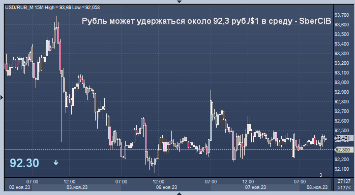 Рубль может удержаться около 92,3 руб./$1 в среду - SberCIB Курс доллар/рубля на Мосбирже интервалами в 1 минуту Курс доллар/рубля на Forex интервалами в 4 часа "На рынке ОФЗ в центре внимания аукцион Минфина, будет предложен лишь 15-летний выпуск с фиксированным купоном ОФЗ-26243 (май 2038 года). Результаты аукциона определят динамику вторичного рынка и покажут, насколько устойчив повышенный спрос на выпуски с фиксированным купоном, который наблюдался в последние дни. Мы допускаем, что по итогам дня доходности могут вырасти еще на несколько базисных пунктов, так как выглядят заниженными по сравнению с фундаментально обоснованными уровнями", - пишут аналитики SberCIB Investment Research. Котировки нефти марки Brent могут остаться в диапазоне $81-82 за баррель в среду, полагают в SberCIB. MarketSnapshot - Новости ProFinance.Ru и события рынка в Telegram По теме: От нас не спрячешься: репатриируй и конвертируй! Реакция курса рубля на резкое повышение ставки Банком России Курс рубля рез