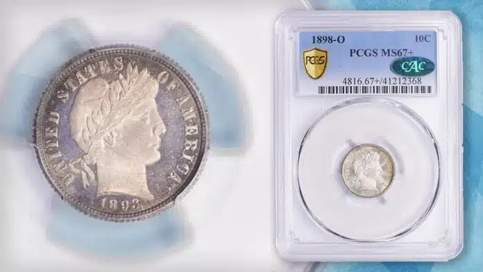 1898-O Дайм Барбера (PCGS MS-67+ CAC; тонированный)