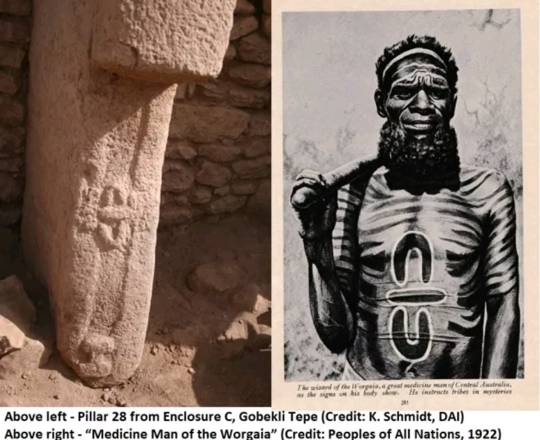В Океании существует миф о том, что в далеком прошлом земля (женщина по имени Папа) и Небо (мужчина по имени Ра-нга) были одним целым. Но их детям – земным богам - стало тесно между родителями, и они разорвали родительское единство. Появилось Небо, Земля и люди между ними. Этот миф хорошо ложится на древний символ, выбитый на одном из камней комплекса Гёбёкле тепе. Два полукруга – нижний и верхний, а между ними горизонтальная черта. Нижний полукруг – земля, верхний – небо, а между ними люди и все живые существа. Согласно этнографическим описаниям Юрия Березкина, американские индейцы различали своих богов вовсе не по внешнему виду, а по знакам, которые те носили на себе. Поэтому, взглянув на богиню Тласольтеотль, не сложно понять какой символ олицетворял землю в ацтекской культуре. Между культурами американских индейцев и жителей Саяно-Алтайского региона есть много общего. Об этом я уже писал в статье "Каменные яйца и тотемные столбы - осмысление самой странной древней культуры Сибири".