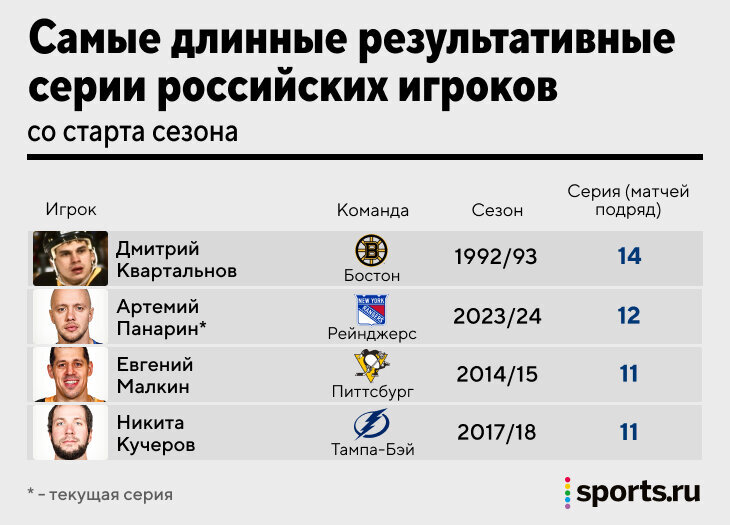 Панарин продолжает разрывать лигу: 12 матчей подряд с набранными очками