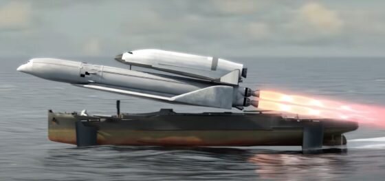 Пользователи сети визуализировали концепт советской разработки для запуска космического шаттла с баржи на подводных крыльях