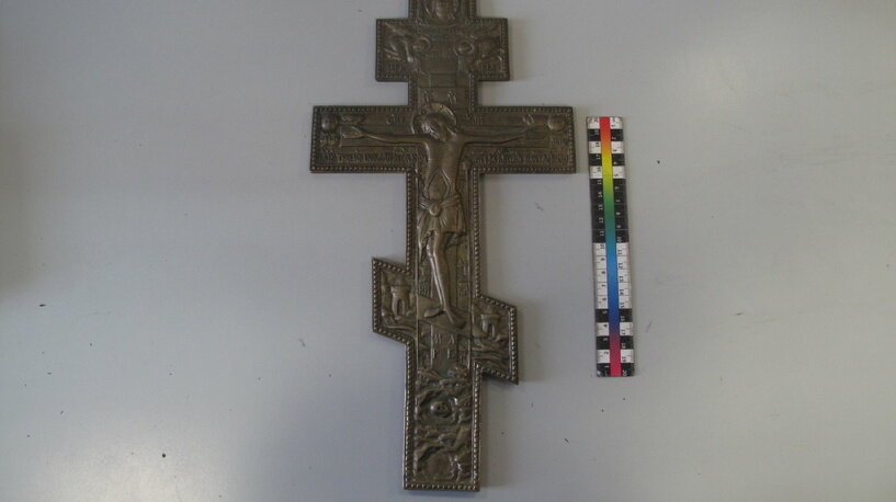 Таможенники задержали в Кольцово пассажирку с килограммовым крестом и старинной иконой. Фото, видео
