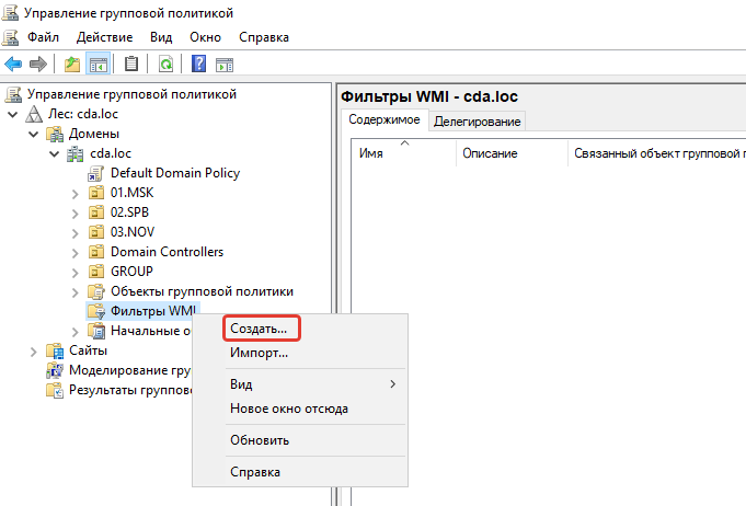 Опушу политику по настройке синхронизации времени с NTP сервером в домене Active Directory для серверов и пользовательских компьютеров. Очень много типичных проблем связано именно с расхождением времени на сервере и компьютере, поэтому это одна из обязательных политик в домене. Идем в оснастку "Управление групповой политикой" и первым делом создадим фильтр WMI для нацеливания применения политики на PDC (Эмулятора PDC ролей FSMO) сервер, именно контроллер домена с этой ролью станет NTP сервером. Имя - PDC Запросы - root\CIMv2 Select * from Win32_ComputerSystem where DomainRole = 5 Создадим политику в корневой директории нашего домена, назовем ее к примеру "NTP" Выбираем ее и жмем "Изменить" Идем в Конфигурация компьютера > Политики > Административные шаблоны > Система > Служба времени Windows > Поставщики времени Настроить NTP-клиент Windows NtpServer 0.ru.pool.ntp.org,0x9,0x9