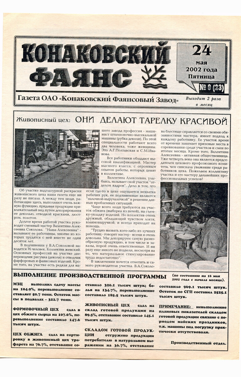 КОНАКОВСКИЙ ФАЯНС. Последние годы завода. Май 2002. № 9 (23) + 23 ФОТО!