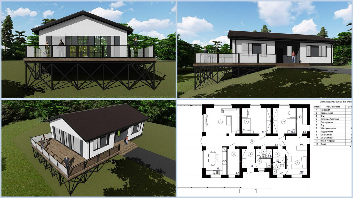 Смотрим оптимальный по площади и рациональным планировкам одноэтажный коттедж со вторым светом над кухней-гостиной с тремя спальными комнатами, отдельным помещением котельной (теплогенераторной). Публикуемый проект одноэтажного дома с открытой террасой разработан как концепция по планировкам Ан23-1 - смотрите по ссылке в Дзен.