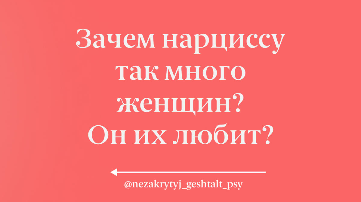 Скорее боится, опасается и в глубине души ненавидит. Или питает другие сложные чувства. В связи с чем предпочитает держаться поодаль на выдерживаемой собою эмоциональной дистанции. Построить отношения с одной женщиной он не может, наделить своего партнера эксклизивностью тоже. (Даже если в прямых посланиях он транслирует обратное). По сути нарцисс избегает реальных отношений. Всегда. Зато отлично "стимулирует" собственную фантазию грандиозности о том, какой он невероятно значимый, желанный, востребованный и все такое. Нарциссу, который не ощущает самоценность, критически важно искать подтверждение своему существованию в принципе вовне. Такой поверхностности нарциссу достаточно. Перебирая людей, сравнивая их между собой, словно это помидорки на рынке, нарцисс по "внешним признакам" создает некие иерархии и градации. Понятно, что нарцисс не сознательно идеализирует своих партнеров на стадии идеализации. Его настоящая потребность - быть отраженным в глазах партнера, чтобы произошла иде
