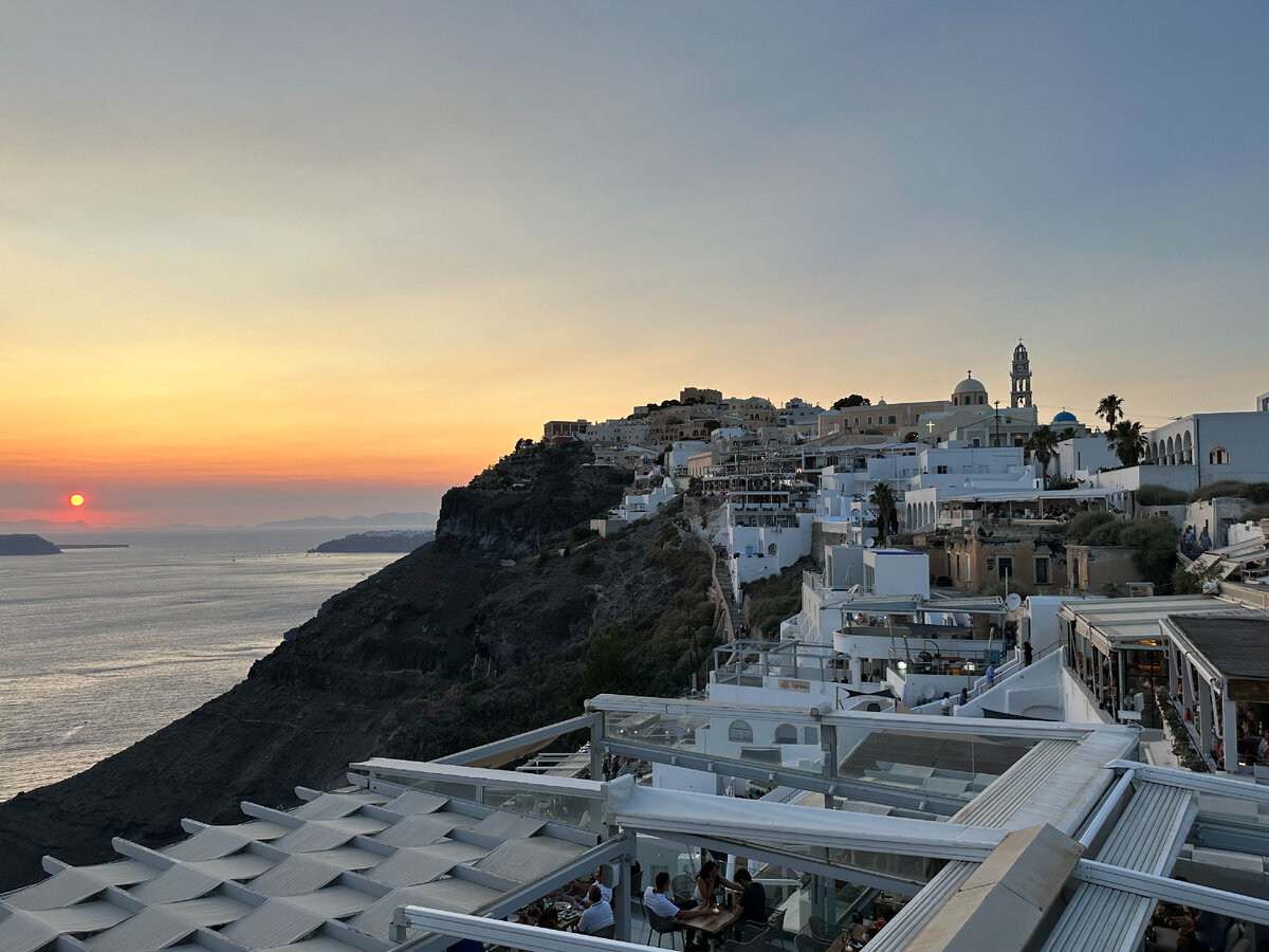 Санторини - это действующий вулкан, середина которого когда-то обвалилась и была поглощена водой, так получилась кальдера. На уцелевших вулканических стенах у самого обрыва люди стали активно строить жилища, видимо, завораживающий вид превалировал над самосохранением. А вид, действительно, стоит того!