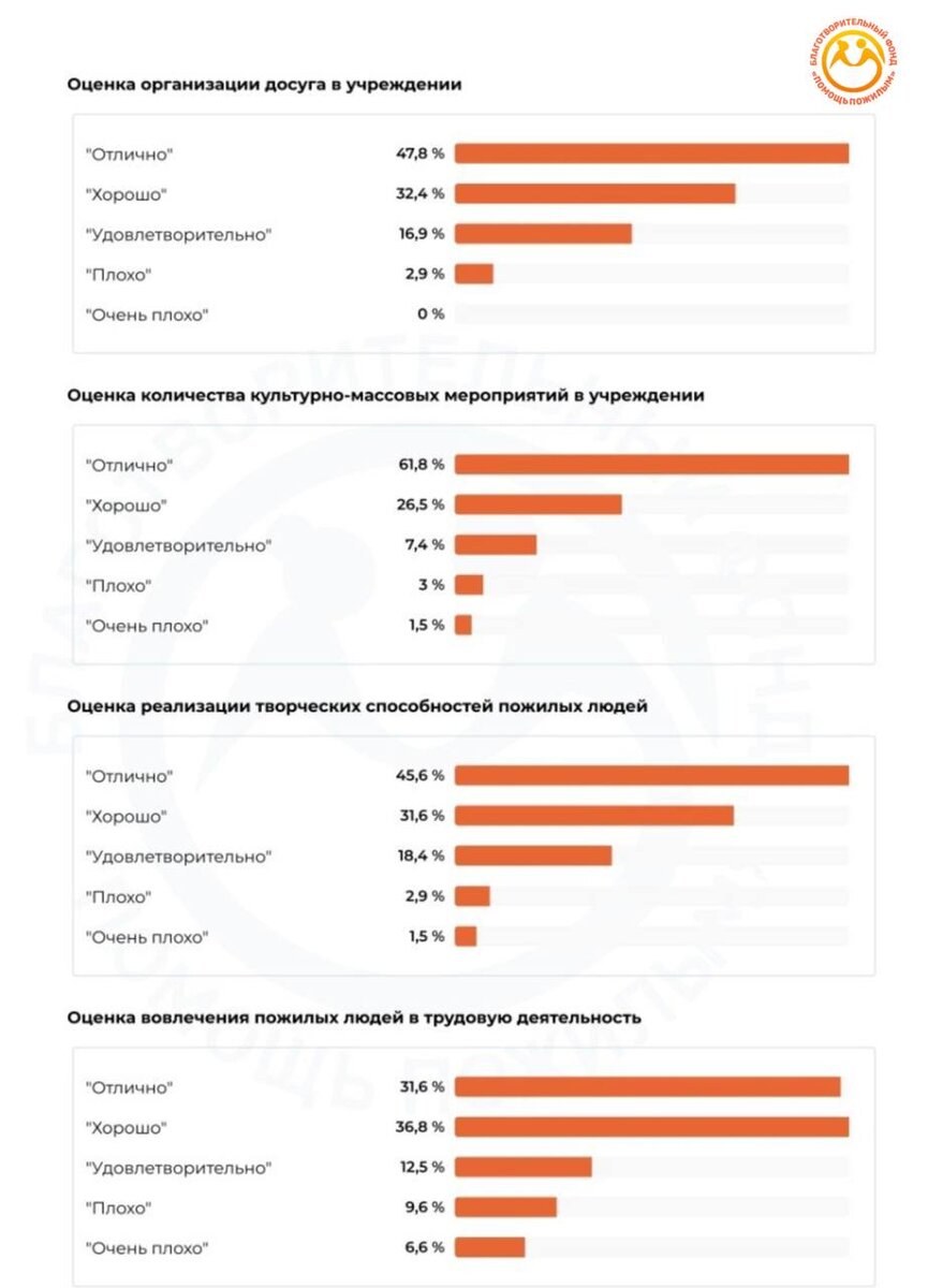Мы продолжаем делиться результатами Всероссийского социологического исследования, проведенного нашим Фондом. Сегодня хотим обратить внимание на мнение руководителей, которые оценили условия пребывания пожилых людей в домах престарелых https://fond60.ru/documents/issledovanie/.