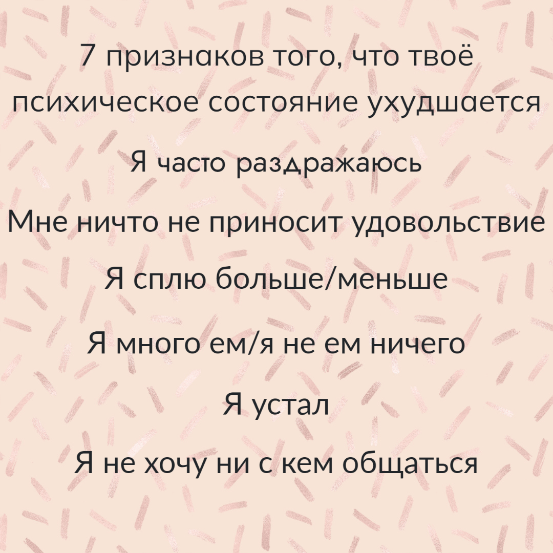 1. Часто проявляющееся раздражение: Раньше вы были спокойным человеком, и мелочи не влияли на ваши эмоции. Однако теперь, даже незначительные вещи, которые раньше проходили мимо, вызывают в вас негодование. Более того, даже вещи, которые действительно могут огорчать, начинают беспокоить вас все чаще. 2. Утрата интереса к радостям: Раньше вы с удовольствием занимались активностями, которые приносили вам радость. Однако сейчас даже эти занятия не доставляют удовольствия. Вместо радости вы ощущаете грусть и раздражение. 3. Изменения в сне: Ваш сон стал неспокойным. Либо вы постоянно недосыпаете, либо, наоборот, впадаете в спячку и просыпаетесь уставшим. Здоровый сон длится в среднем 7-9 часов, но ваш сон больше не соответствует этой норме, и это начинает влиять на ваше физическое и эмоциональное состояние. 4. Изменения в аппетите: Вы заметили изменения в своем аппетите. Либо начинаете переедать, возможно, чтобы компенсировать свои эмоции, либо, наоборот, у вас пропал интерес к еде. Это мо