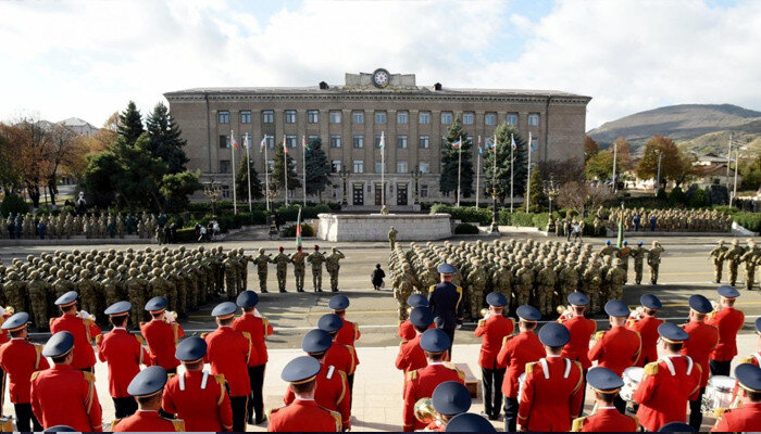 Сегодня в оккупированном Степанакерте- столице Республики Арцах Азербайджанские власти проводят парад победы. Ильхам Алиев принимает парад,, победы,, с женой Мехрибан Пашаевой и сыном Гейдаром. Если смотреть с точки зрения международных норм, то это не,, парад,, а Геноцид, когда уничтожаешь определённую часть народа, а остальных выгоняешь насильно. В этом виноват один человек и он коллега Алиева. На самом деле - сегодня день позора и унижения армянского народа . Лишь то, что в этот момент Алиев организовал и провел в Степанакерте военный парад, является для армян клеймом позора. Эту стигму необходимо устранить, чтобы армянский народ мог жить достойно на своей земле. Все те, кто довёл Армению и Арцах до такого трагического и разрушительного состояния, должны ответить, а некоторые из них, как говорится, должны уйти под землю,в тартарары...Много тут не напишешь, и так всё ясно и понятно. В этом виноват один человек, когда ему ещё Алиев говорил, что не надо воевать, а отдавать всё что