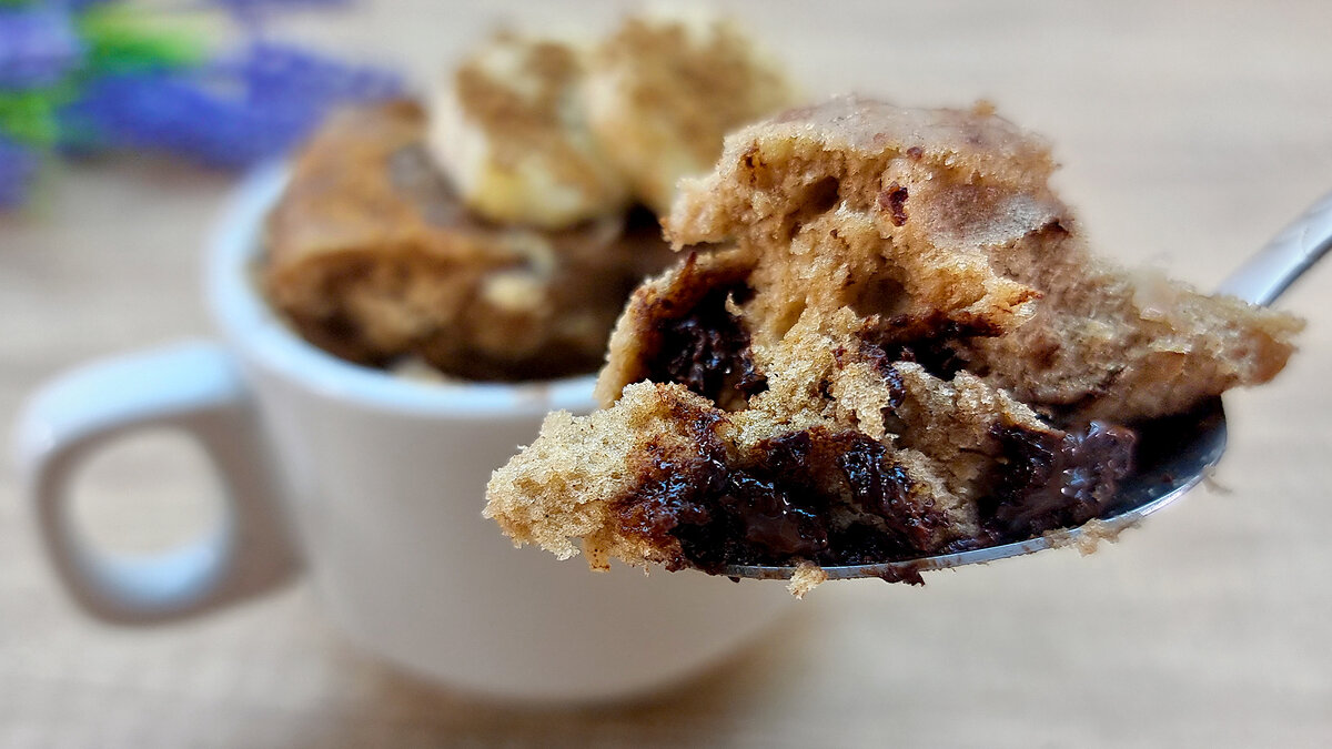 Если хочется кусочек сладкого десерта к чаю, то сделать это можно быстро и легко. Пять минут подготовка ингредиентов и одна минута приготовления в микроволновке. Тортик или пирожное получается пышный и ароматный,