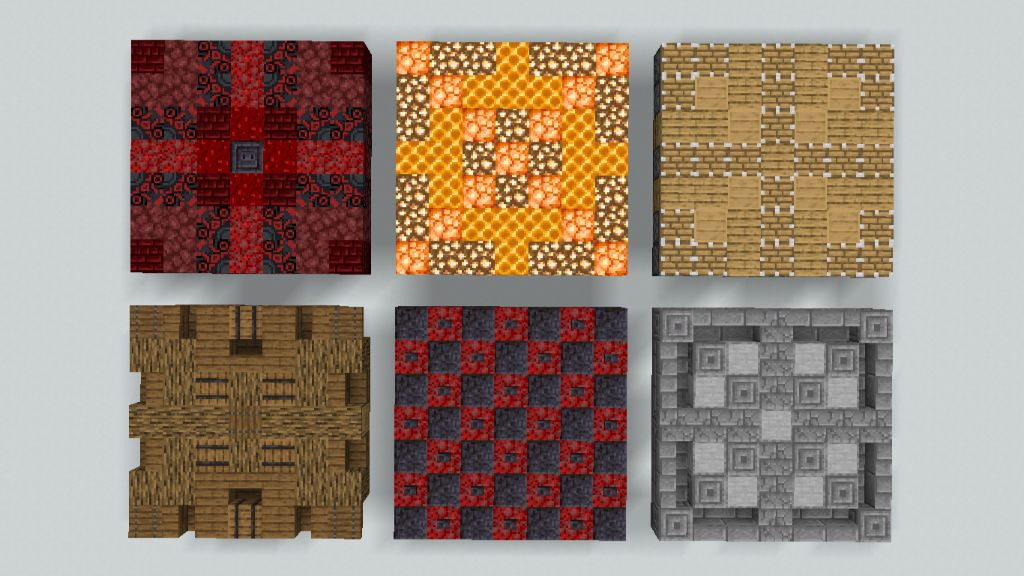 Для этого шаблона вам нужно будет нафармить много адских бородавок, так как это основной ингредиент для большинства блоков. И вам также понадобится Глина, или найдите себе биом Мезы для Терракоты.Этаж Нижнего Зала