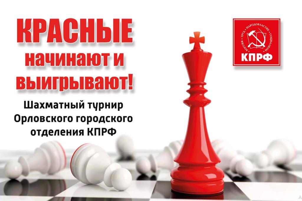 Уважаемые друзья, 2 декабря Орловский горком КПРФ проводит II шахматный турнир «Красная ладья», посвящённый 105-летию образования Всесоюзного Ленинского Коммунистического Союза молодежи. Турнир будет проводиться на базе «Шахматно-шашечной спортивной школы» по адресу: г. Орёл, ул. Пролетарская гора, д. 7. Начало в 10-00 часов. Соревнования проводятся в соответствии правилами шахмат ФИДЕ по швейцарской системе в 6 туров. Контроль времени: 10 минут до конца партии с добавлением 5 секунд за каждый сделанный ход. В соревновании принимают участие члены КПРФ и сторонники партии. Участники, занявшие первое, второе и третье места, награждаются кубками и шахматными наборами. В номинации «За волю к победе» будет награждена шахматным набором участница, занявшая самое высокое место среди женщин. Заявки на участие принимаются до 30 ноября на электронную почту горкома КПРФ orel.kprf@mail.ru, ответственный - секретарь горкома Николай Осипов, телефон 8(953)624-06-99.