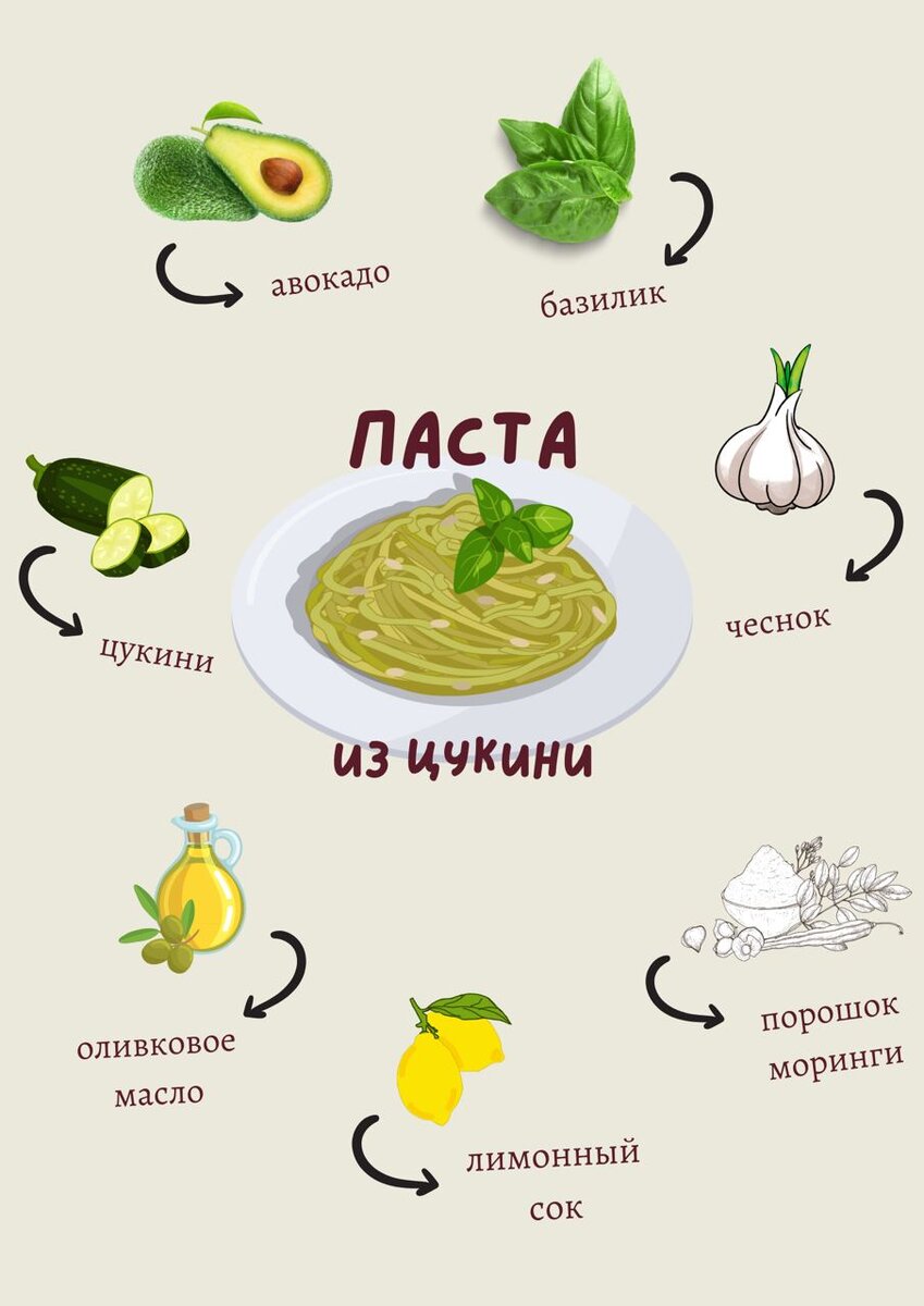Здоровая и легкая альтернатива обычной пасте, которая приготавливается из цукини, вместо традиционных макаронных изделий. Ингредиенты найдете на картинке⬆️ Шаг 1 В блендер поместите авокадо, листья базилика, измельченный чеснок, столовую ложку порошка моринги, лимонный сок, соль и перец по вкусу. Шаг 2 Перемешайте до однородной массы. Шаг 3 Медленно влейте оливковое масло, затем добавьте мелко нарезанную петрушку/кинзу (можно не добавлять), снова перемешайте. Шаг 4 Нарежьте цуккини в лапшу (используйте специальную терку-шинковку, либо Нож для чистки овощей). Отложите в сторону. Шаг 5 Добавьте немного масла, пригодного для жарки (например, томленое), на сковороду. Поставьте на маленький огонь. Шаг 6 Поместите на нее лапшу, смешайте ее с песто. Подавайте блюдо теплым или холодным🤍 Приятного аппетита