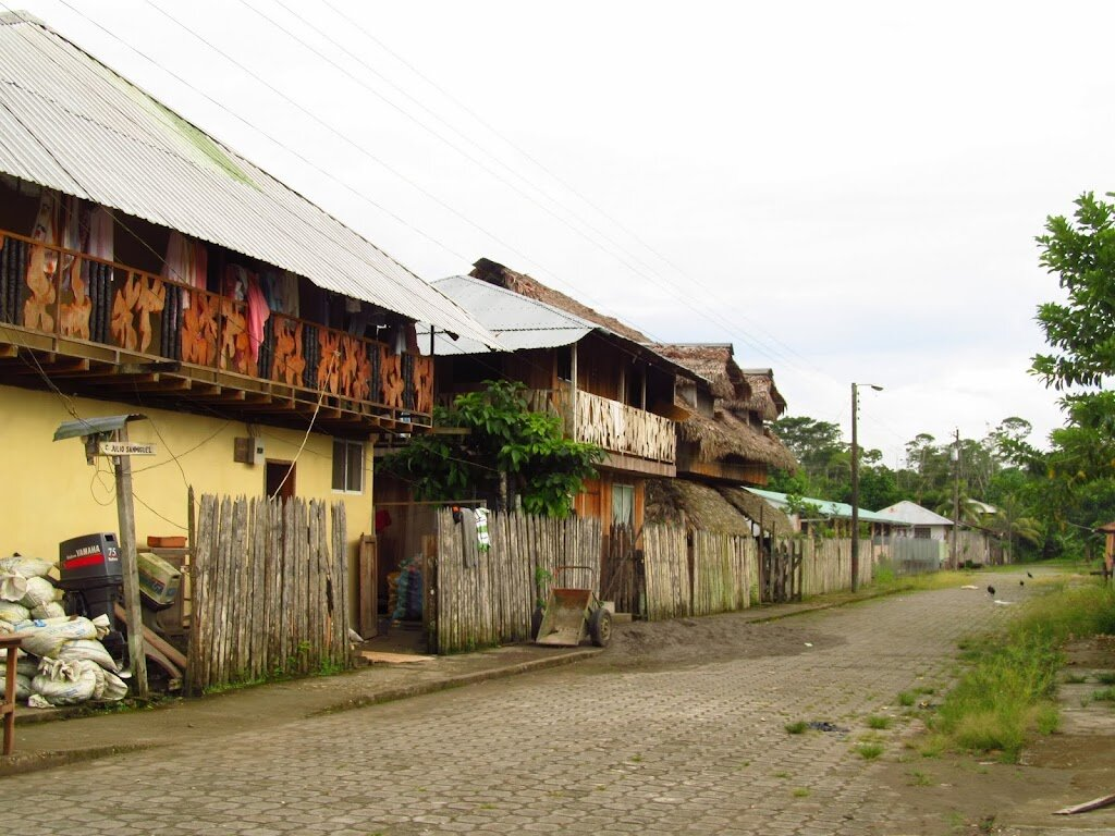 До сих пор вспоминаю, как в былые времена мы пересекали границу Эквадора и Перу в совершенно глухом месте, где практически нет ничего - ни деревень, ни дорог! Только лодки плавают с одной стороны на другую. Речь идёт о реке Напо - притоке Амазонки. Выше - главная улица приграничного посёлка Нуэво-Рокафуэрте, что на востоке Эквадора. Дорог сюда никаких нет - только на лодке можно добраться. Я уже рассказывал, как мы сюда добирались. Приехав, мы стали выяснять, как нам из этой дыры перебраться в другую дыру - перуанскую. Пошли искать пограничника и быстро его нашли! Справа - главный пограничник заставы(!). Попытка убедить его нам поставить выездные штампы, чтобы мы уплыли сегодня же в Перу. Для этого надо было найти лодочника с лицензией, готового нас туда перевезти, и предъявить его пограничнику. Нелёгкая была задача собрать в одном месте двух таких разных людей, имеющих латиноамериканскую нерасторопность, да ещё и за 15 минут до официального закрытия погранзаставы. Обратите внимание,