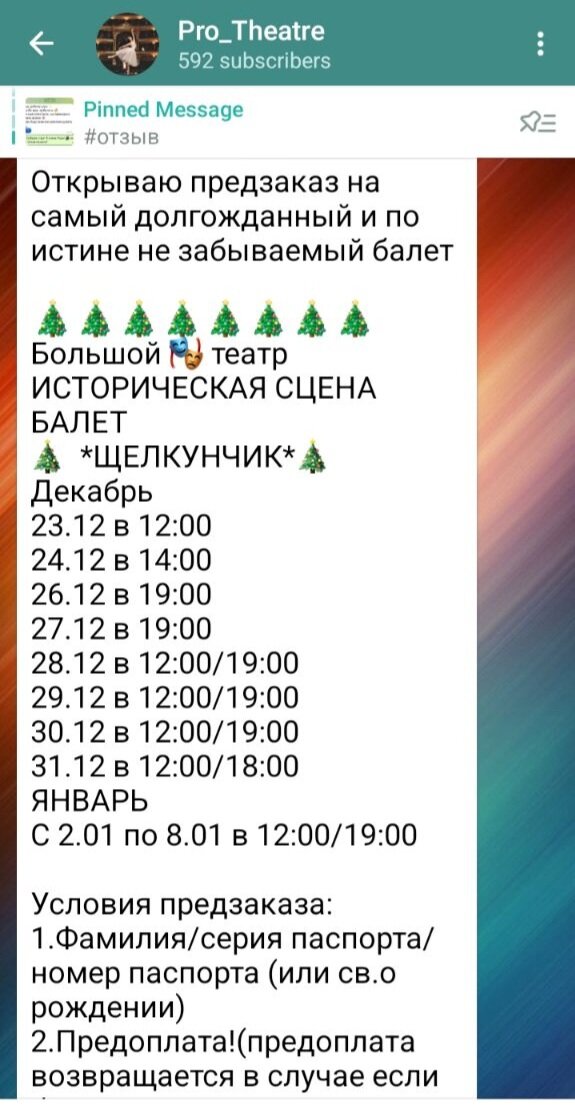 Баталии вокруг билетов на балет "Щелкунчик" в Большом театре, разыгравшиеся 4 ноября, приутихли, но не закончились. Впереди ещё два дня, когда будут продаваться билеты в кассах: 11 ноября на 31 декабря и 18 ноября на все спектакле в январе. Но вот что интересно. Заходишь в телеграм канал Pro_Theatre, а там... По скольку на этом канале предлагают билеты и на другие спектакли, в другие театры, причём со скидками, предположу, что это что-то типа театральной кассы он-лайн. То есть, по сути, все законно. Но... Цены на билеты... Больше всего меня заинтересовали пригласительные в 1 ряд ярусов. Обычно туда продаются билеты и пригласительных быть не может. Пригласительные могут быть в бенуар, где ложи выкупаются на сезон. На днях в своем телеграм канале депутат Госдумы Елена Ямпольская опубликовала обращение к Генеральному директору Большого театра Владимиру Урину. Где она, в том числе напомнила, что четыре года назад был принят закон, который прямо запрещает реализацию билетов неуполномоч