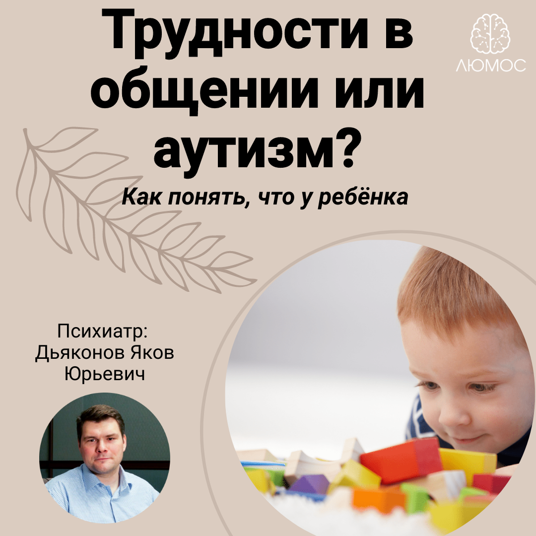 Иногда родителям сложно понять, что происходит с их ребенком? Трудности характера, психологические проблемы, дурное влияние, депрессия или может аутизм? Давайте разбираться… Про Аутизм. Главное: диагноз Аутизм не выставляется по какому-то одному признаку. Это всегда сумма патологических маркеров в поведении ребенка и в его взаимодействии с окружающим. Есть классический набор признаков: трудности в социальном взаимодействии (невозможность спонтанного общения, категоричная замкнутость, нарушение взаимной коммуникации), ограниченный круг интересов (играет и взаимодействует с малым количеством предметов и ограниченным количеством лиц), отмечаются стереотипные, повторяющиеся действия. Признаков Аутизма может быть множество – избирательность в еде, различные нарушения поведения и спонтанные истерики с аутоагрессией. Да, для каждого возраста вышеописанные вещи могут быть несколько разными, да и сами пациенты сильно отличаются друг от друга по набору симптомов. Про «трудности в общении». Трудн