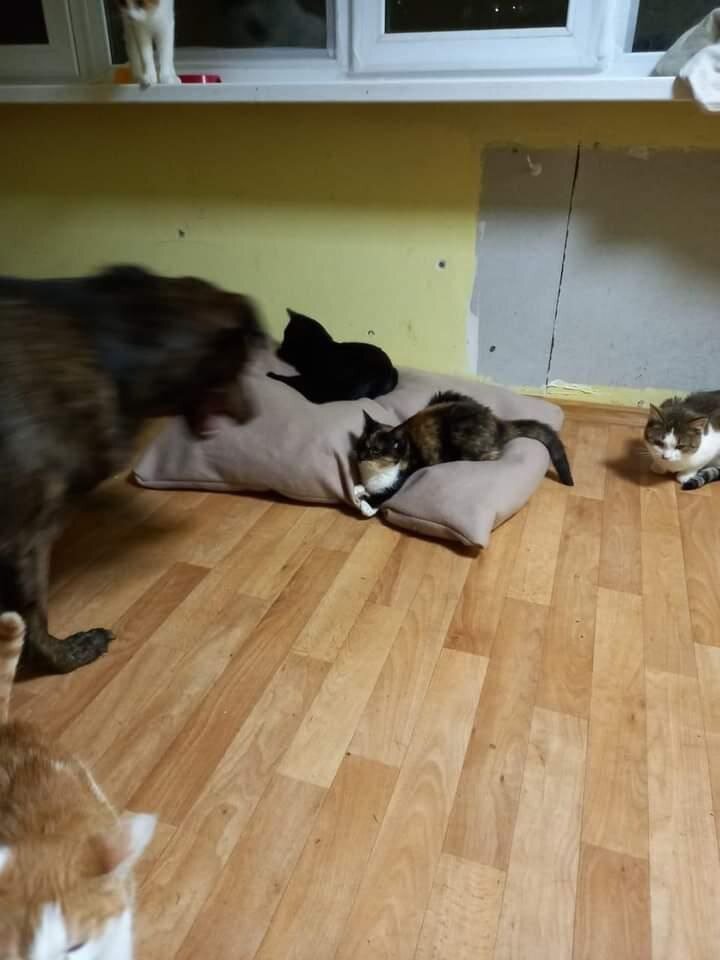 На днях в гости к хвостатым приезжала @Maria_Akireikina – постоянная помощница, опекун Чижика и Пыжика.🧡 Она привезла несколько сшитых ими матрасов для кошек. Ребята сразу оценили и заняли все места. Мария хотела привезти много, но мы её остановили – питомцев выселяют. Куда переезжать, непонятно.