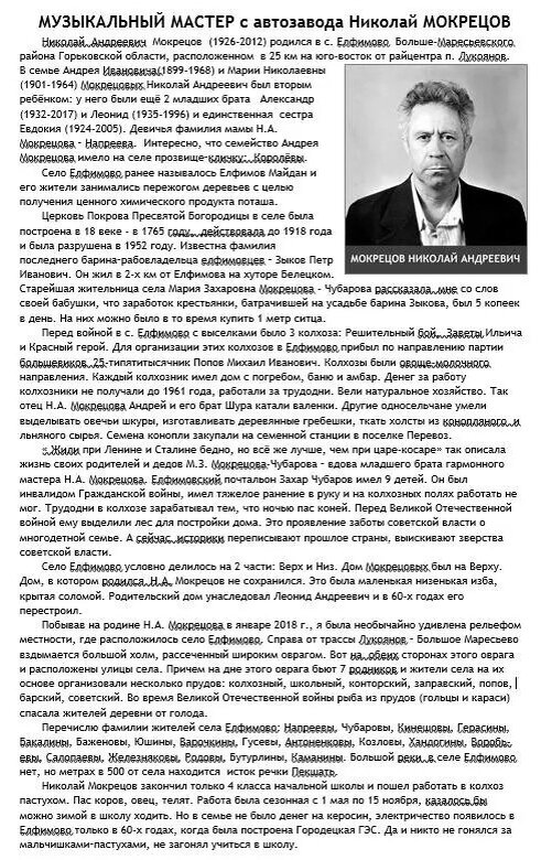 Гармонный мастер Николай Мокрецов.