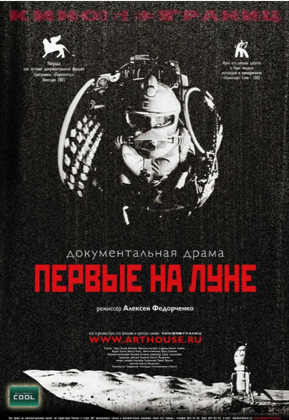 Фильм снят в жанре "псевдодокументалистика". А поскольку этот жанр был введен в оборот в США, его еще в России иногда называют "мокьюментари" (mockumentary). Английский термин получен слиянием двух слов: "mock" и "documentary". Из последнего слова взята лишь часть - "documentary". Слово "documentary" в переводе не нуждается, а первое слово "mock" - насмешка, подделка, насмехаться, высмеивать, имитировать... и много разных других значений. Но эти главные. В русском языке сделали проще. Назвали "псевдодокументалистика". То есть фильм, снятые как документальный, но документальным не являющийся. И в России фильм "Первые на Луне" был именно таким - псевдодокументальным. Фильм был, а такой категории на Венецианском кинофестивале 2005 года не было. Поэтому фильм отправили к документальным фильмам, где он и получил премию. Удостоился фильм призов и на Кинотавре.