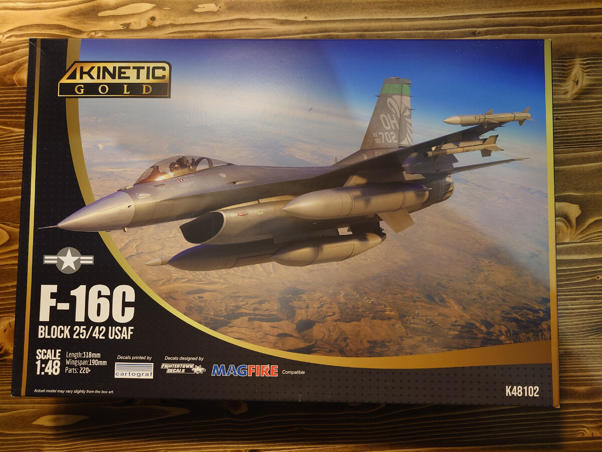 Всем привет! Добрался до очередной коробки, появилось желание поставить на полку один из самых распространенных в мире истребителей 4 поколения. Немного о прототипе, истребитель F-16 был разработан в 1974 году, передан в эксплуатацию в 1978 году. На момент написания обзора состоит на вооружении в 25 странах, является самым массовым истребителем 4 поколения, а также имеет множество модификаций, позволяющих не терять актуальность и лучше приспосабливаться под нужды эксплуатантов. Набор от Kinetic за индексом K48102 вышел в 2022 году и по заверениям производителя является полностью новым. Первый же набор F-16AM Block 15 вышел у Kinetic в 2008 году, после чего оброс множеством вариаций. Итак приятная коробка, модель относится к серии GOLD, не совсем понятно по каким критериям, ну да ладно... Из коробки можно собрать один из двух вариантов F-16C Block 25 и один вариант F-16C Block 42. По традиции начнем с литника А На данном литнике детали прицельных комплексов Lantrin AAQ-13/14/28. Отлит