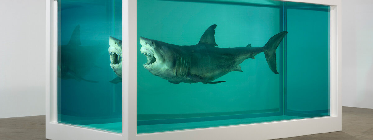 "Физическая невозможность смерти в сознании живущего" - это инсталляция, созданная в 1991 году британским художником Дэмьеном Херстом. Он создал аквариум, наполненный раствором формальдегида, куда поместил тигровую акулу. Эта инсталляция стала одним из наиболее знаковых образов в современном искусстве и эмблемой британского искусства по всему миру.