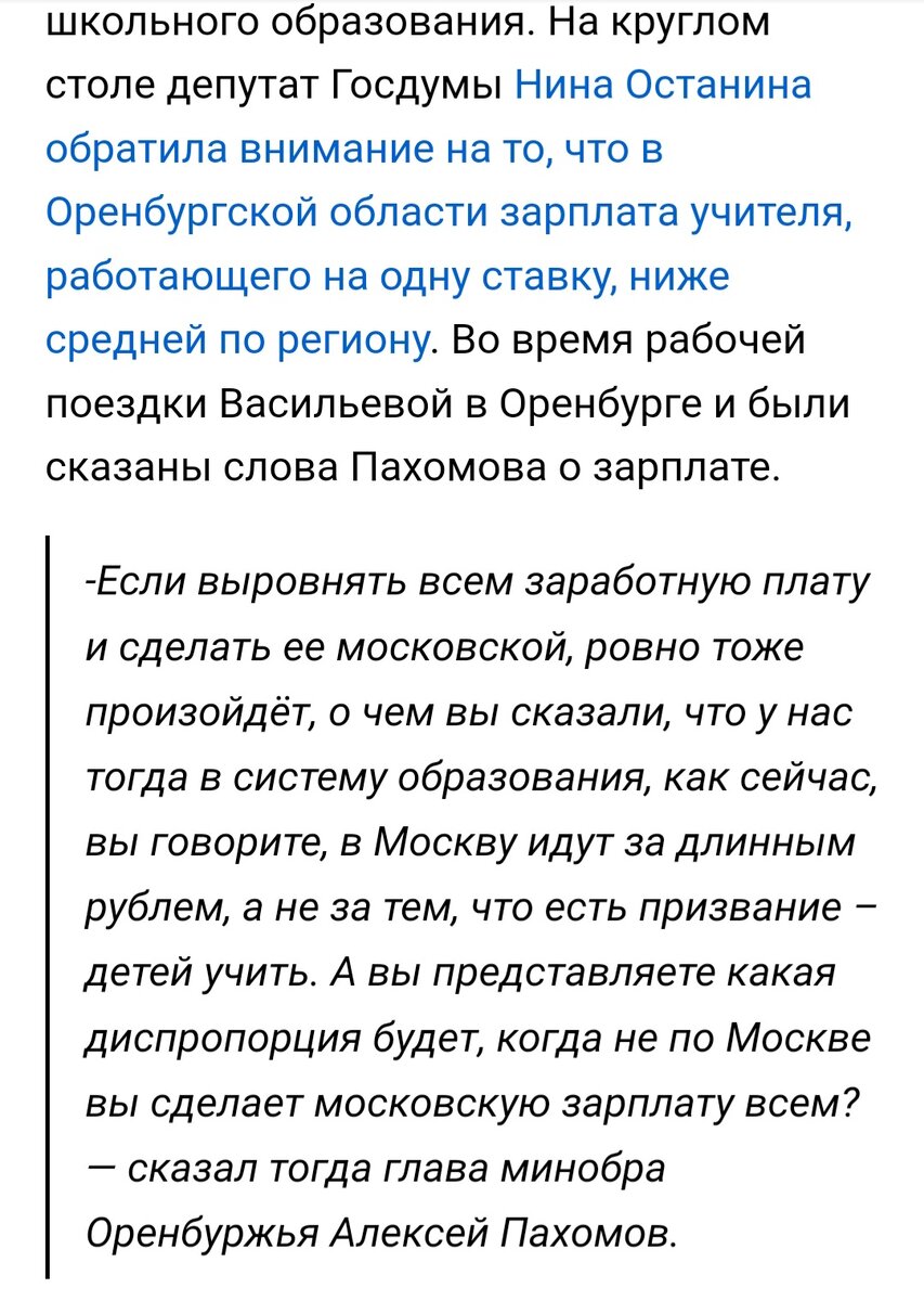 А учителям стоит призадуматься!!! Как рванут в образование люди, будет конкурс бешеный на место учителя !!! Пока,правда, совсем наоборот - учителей везде не хватает и их заманивают,чем могут. Например,программой Земский учитель в том же Оренбуржье и предлагают миллион. Рублей. Лишь бы приехали в село. Хоть кто-то. Но министру ,ему ж видней. Он знает, что говорит. Ну,и традиционно - это Путин виноват !!!