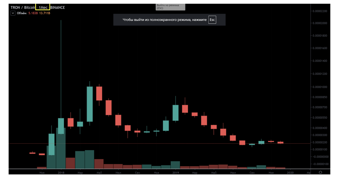 TRX/BTC таймфрейм 1 месяц. Биржа Binance