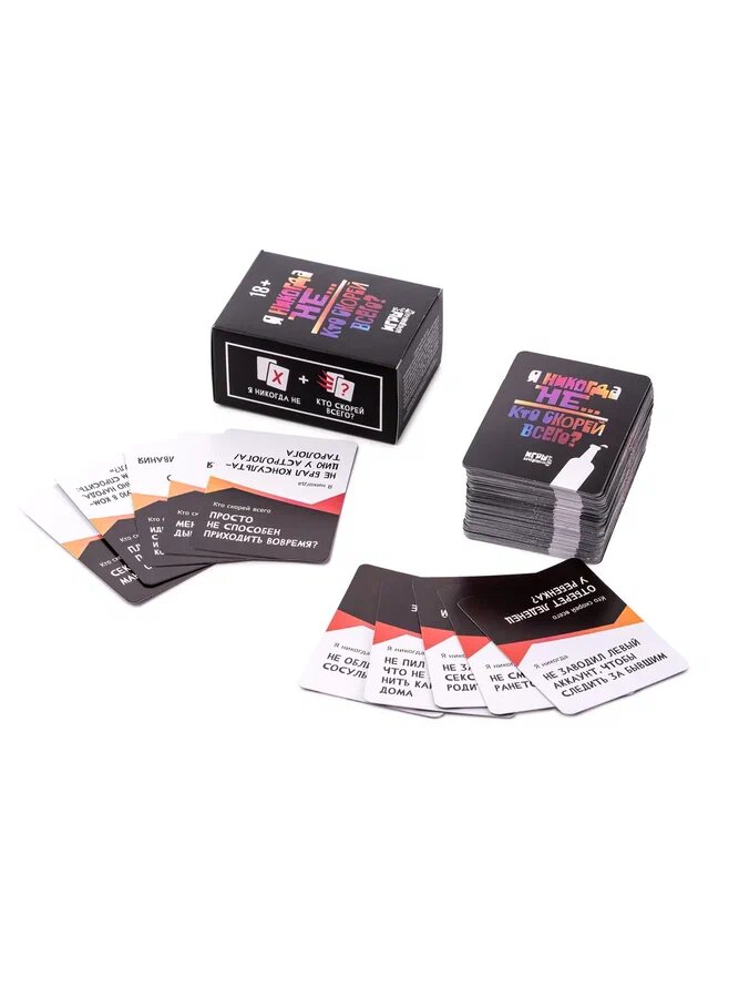 Собираете большую компанию и боитесь, что кому-то будет скучно? Veselo Games никогда этого не допустит! Поэтому специально для таких случаев мы подготовили топ-5 настолок для большой компании. Я никогда не / кто скорей всего Даже в большой компании можно вести общение всем столом, и эта игра отлично его обеспечит. Каждый вытягивает карту, где будет написано, допустим, “я никогда не просыпался голым в незнакомой постели”. И если с вами это всё-таки происходило, то вы пьете, как правило, что-то алкогольное. С вариантом “кто скорей всего” дела обстоят несколько иначе. Тут стол выбирает человека, с которым действие на карточке скорей всего может произойти, и уже выбранный человек пьет. Правила проще пареной репы, зато вы узнаете друг друга с неожиданных сторон. Мафия Начнем с классического варианта, знакомого каждому. К тому же в этой игре одновременно могут участвовать до 20 человек. Если всё-таки кто-то не знает правил легендарной игры, объясняем: это ролевая игра, где каждый участник в