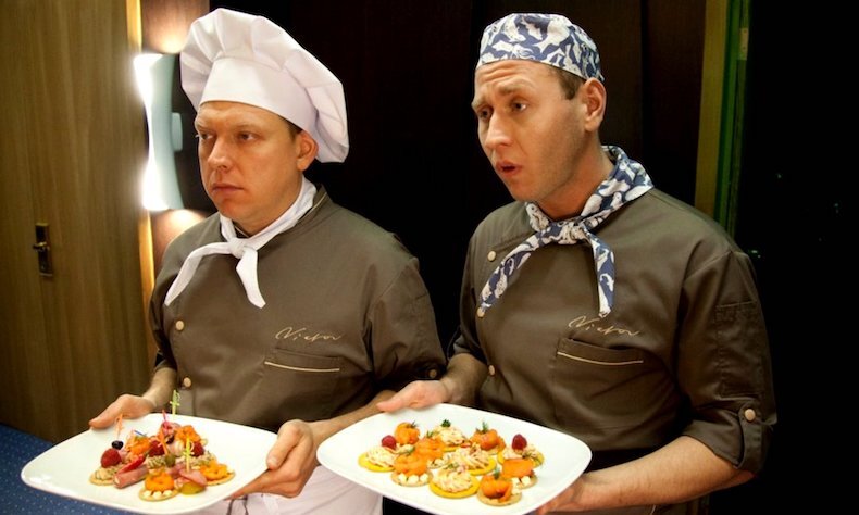 Ресторан «Claude Monet» знаменит своей оригинальной кухней и уникальными блюдами. Знаешь ли ты хоть ещё одно место, в котором бы подавали бараньи какашки? Вот и мы не знаем. О самых необычных блюдах «Claude Monet» читай дальше! Бараньи какашки Однажды Сеня и Федя нашли бараньи какашки и решили, что их можно подкинуть в шкафчик Кате. Катя их нашла и приготовила специально для Сени и Феди блюдо с «жемчужинами», которыми парни радостно угостились. Вышло уникальное блюдо баранье-молекулярной кухни. Странные грибы Обиженный на Нагиева повар решил добавить в одно из блюд галлюциногенные грибы, чтобы отомстить. Всё получилось: почти все работники «Claude Monet» попробовали оригинальное блюдо и абсолютно непредсказуемо провели время. Кожаный ремень Когда работаешь на кухне долго, начинаешь воспринимать всё с точки зрения съедобности. Например, Федя однажды поспорил с Сеней, что сможет съесть кожаный ремень. Сварил его, запёк, сделал из него салат и случайно накормил им клиента «Claude Monet».