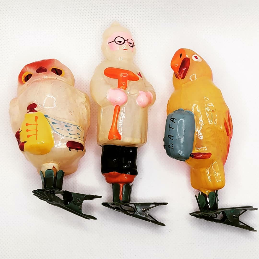 Остальные игрушки семейные, достались от двоюродного брата, но покупались явно до его рождения тётей и моей мамой, когда они в девичестве вместе жили. Любовь к игрушкам, видимо, мне передалась от тёти. У неё их было гораздо больше, чем надо для украшения одной ёлки))) А в 70-х пошла мода на шары, вот ими, похоже, ёлку и украшали, а Айболита с компанией убрали в коробочку. И Слава Богу! Все игрушки замечательно сохранились. Вот Кику не уберегли, увы.