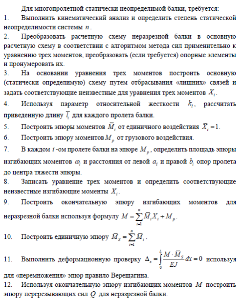 Расчет многопролетной статически неопределимой балки методом сил с использованием уравнения трех моментов
