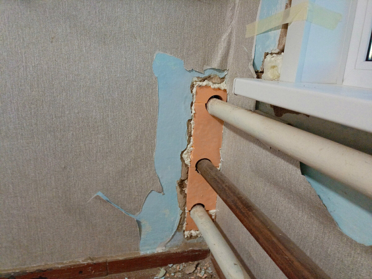 Он начал отверстия в стенах возле труб заделывать - строить, я ушла ломать... 😉