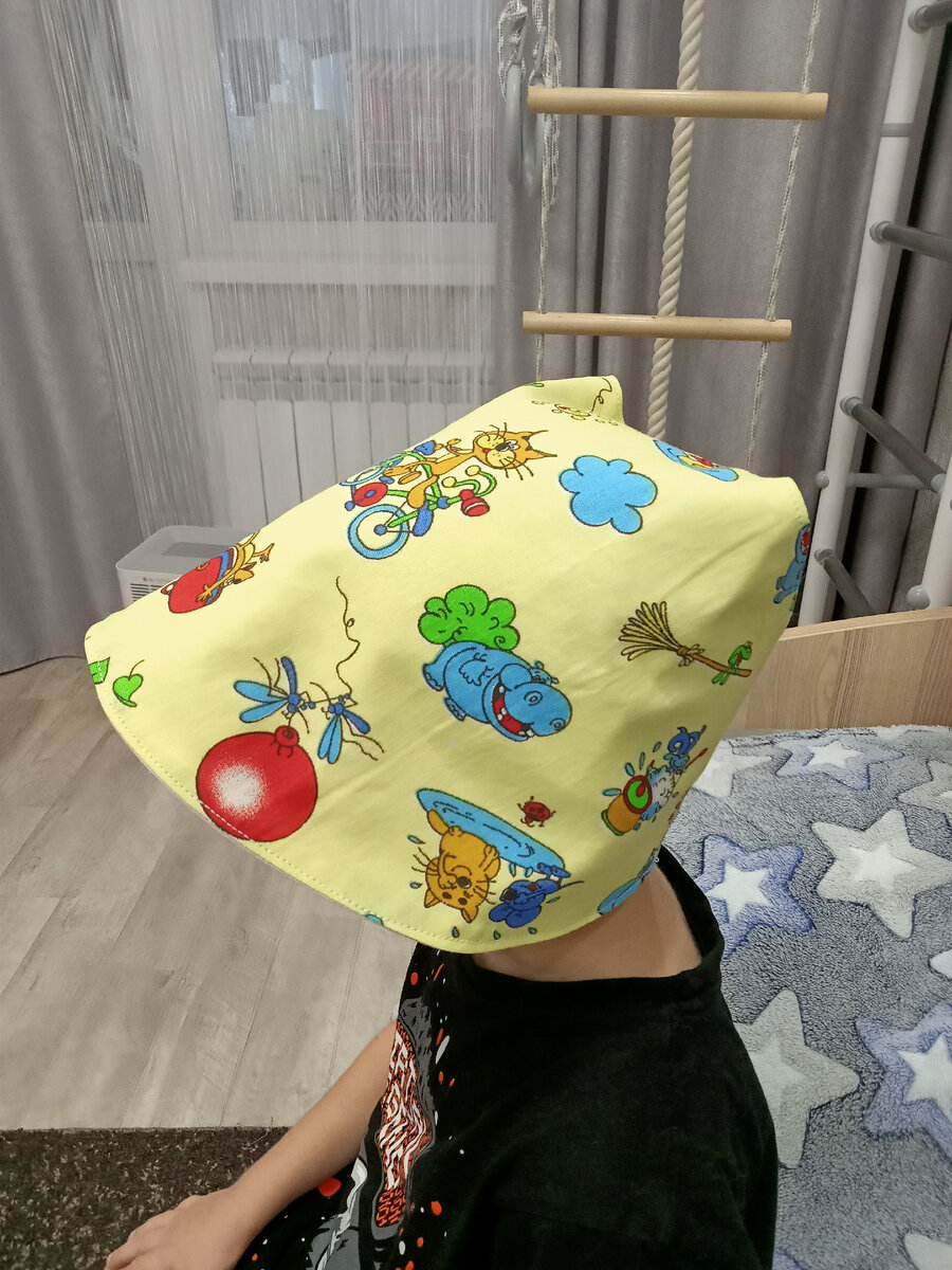 Для пошива вам потребуется: Построение чертежа базовой выкройки https://dzen.ru/media/id/6267bc23479d5a35b2e54ab3/postroenie-cherteja-bazovoi-vykroiki-letnei-panamki-raskladushki-iz-sovetskogo-detstva-655e3e7e9b0e230e299e0460 1. Плотная х/б ткань. 2. Одна пуговица. Шить такую панамку, будем двойной, из тонкого хлопка. Переносим выкройку на ткань. Ткань лучше предварительно проутюжить. Вырезаем 2 одинаковые детали. Не забываем про припуски в 1 см. Складываем их лицо к лицу. Прострачиваем на машинке и не забудьте оставить небольшое отверстие 3 – 4 см для выворачивания панамки. В закруглениях делаем надсечки. Чтобы отлёт панамки был прочным, можно внутрь вставить толстую леску или пластиковую «кость». Также можно проклеить дублерином и простегать. Выворачиваем и проутюживаем изделие. Отстрачиваем край, отступая от края 0,3 см. Если ткань тонкая, то надо прострочить несколько строчек по передней части панамки. Остается подогнать панамку по размеру головы ребенка и пришить пуговицу. Пана
