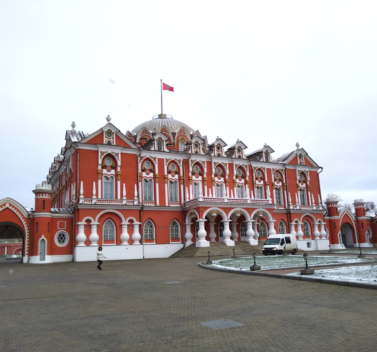На Санкт-Петербургской дороге, неподалеку от Ходынского поля по повелению Екатерины Великой выстроили нарядный красного кирпича дворец с башенками вроде крепостных и полукруглыми служебными постройками, образующими кольцо. Получил этот дворец название Петровского путевого. И это